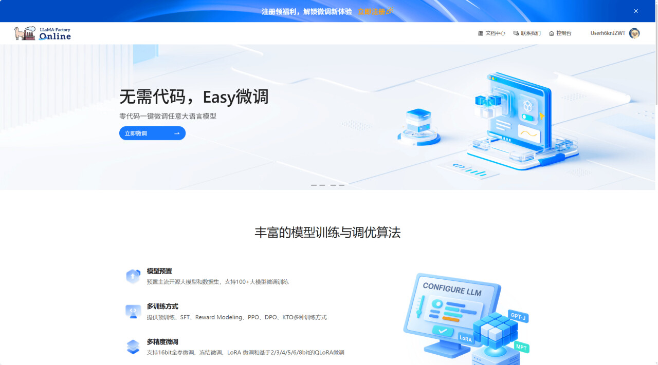 官网地址:https://www.llamafactory.online,现在注册可领取50元无门槛代金券!![]()